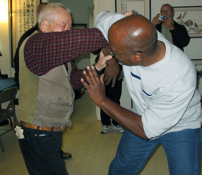 Master Cheng and his students visited his teacher, Grand Master Kong, in San Francisco. Grand Master Kong is also well known for his Chinese Calligraphy and Painting. At the age of 100, he still performed Tai Chi everyday.